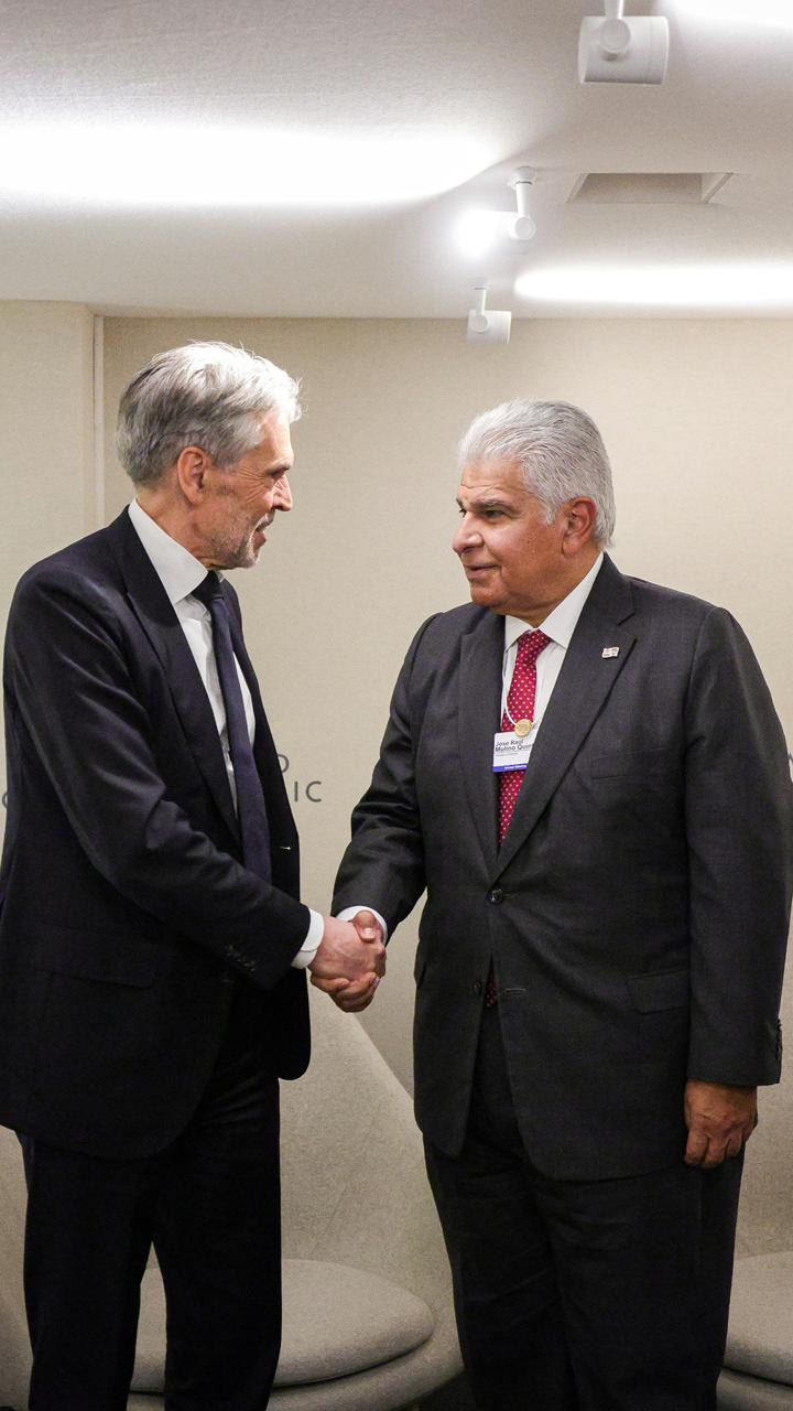 El primer ministro de Países Bajos, Dick Schoof, se reunió hoy en Davos con el presidente de la República, José Raúl Mulino, para abordar temas de cooperación marítima y combate al narcotráfico.