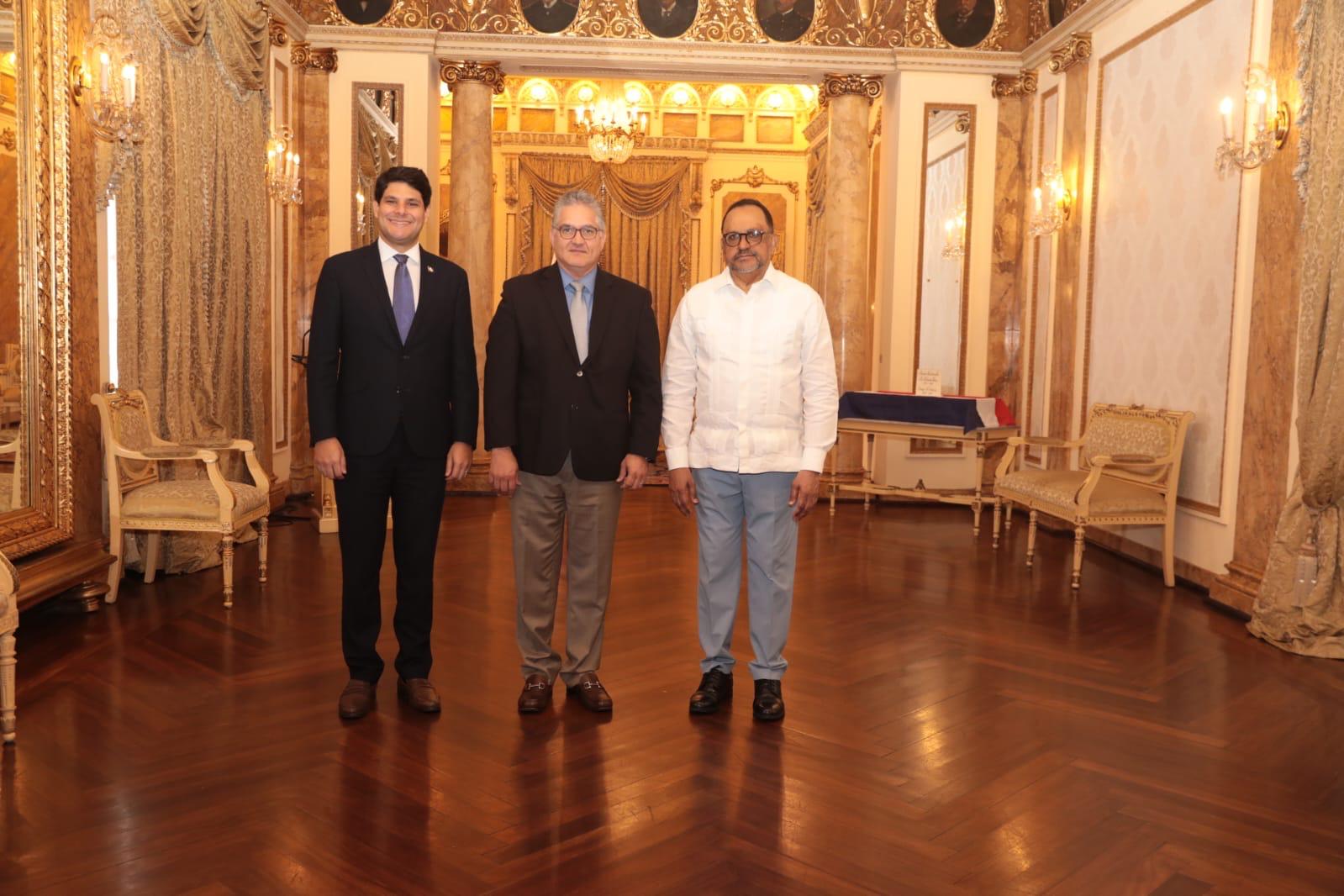 El ministro de la Presidencia, Juan Carlos Orillac recibió hoy en el Palacio de Las Garzas, a una delegación gubernamental de República Dominicana, encabezada por el ministro de Justicia de ese país, Antoliano Peralta Romero, con quien abordó diversos temas de interés para ambas naciones.