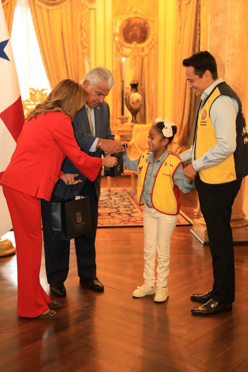 Oriunda de La Palma, provincia de Darién, Elizabeth, de 8 años, compartió con el presidente Mulino sus aspiraciones de ser doctora. Elizabeth nació con espina bífida, lo que la ha llevado a enfrentarse, junto a su familia, a múltiples retos neurológicos, urológicos y ortopédicos, con una lucha frecuente entre cirugías, terapias y consultas médicas.