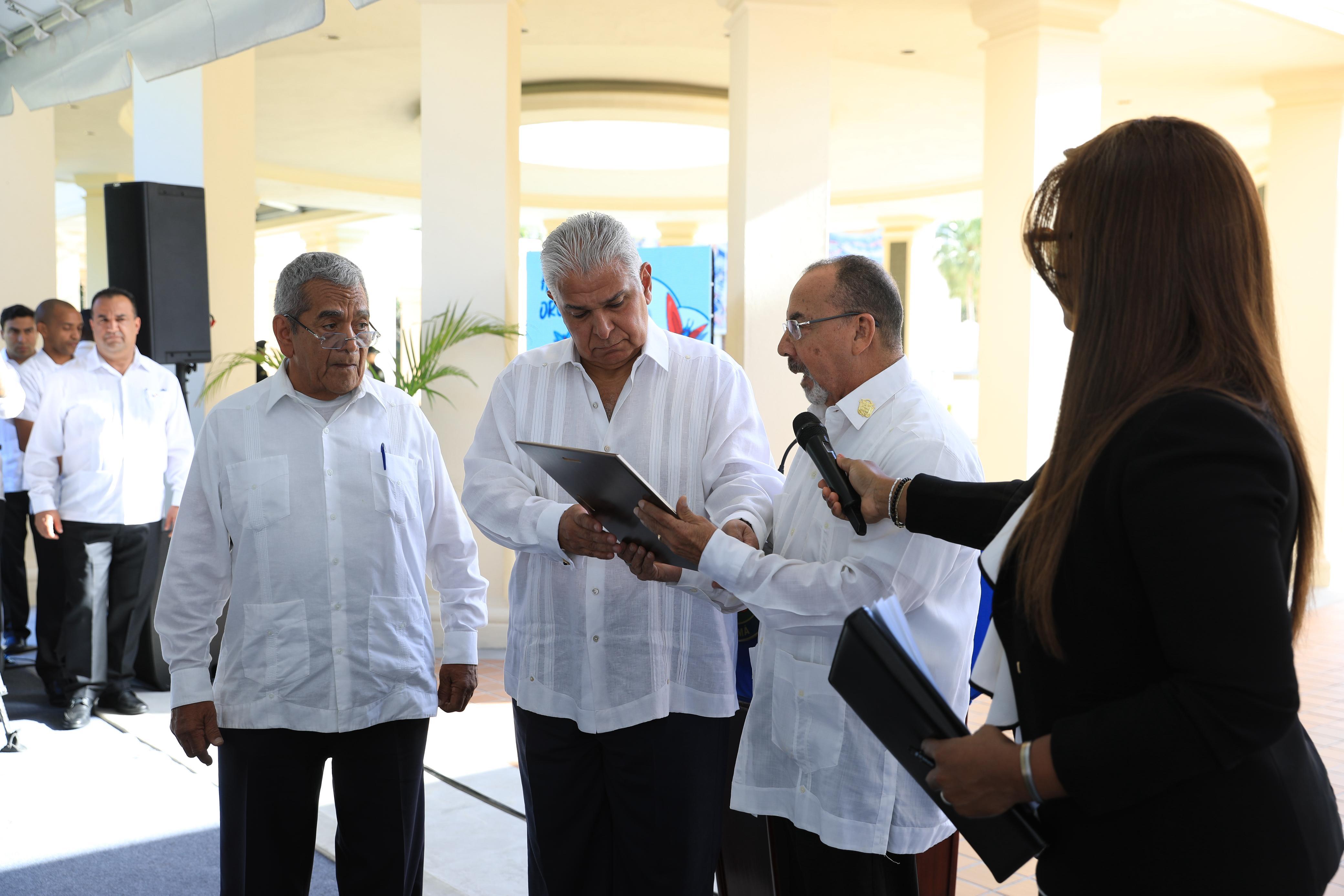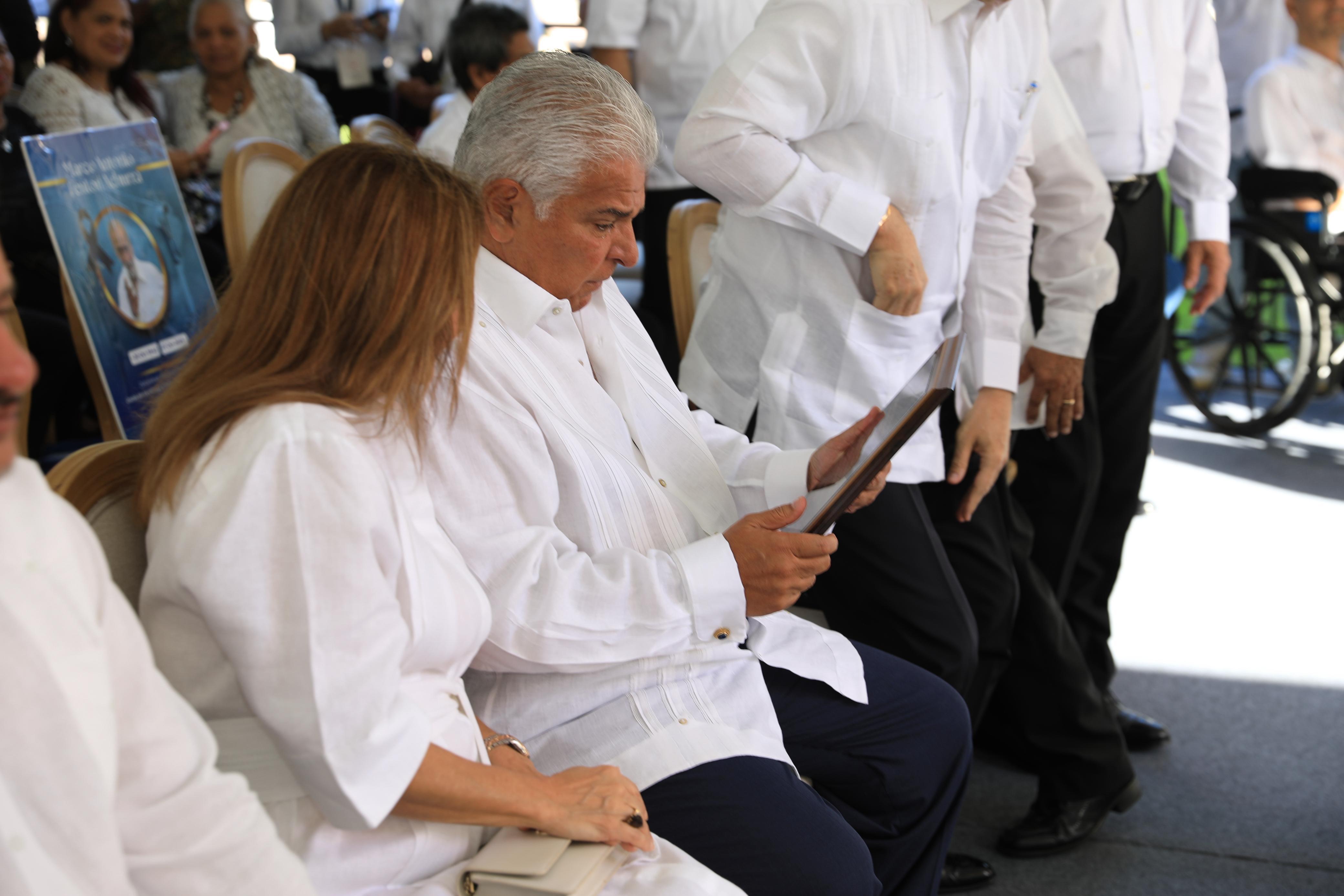 Al final del acto, miembros del Movimiento Nacional de Mártires de Enero de 1964 entregaron al presidente Mulino una placa de reconocimiento, "como mérito imperecedero a la actitud asumida ante los embates temerarios e intervencionistas de un imperio que no cesa de atacar contra los recursos y la dignidad de las naciones del orbe".