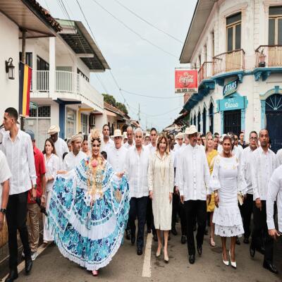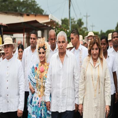 Acompañado por la primera dama, Maricel Cohen de Mulino; ministros, viceministros, directores de entidades públicas y autoridades locales, el mandatario compartió con el pueblo santeño en una jornada llena de fervor en los desfiles patrios.