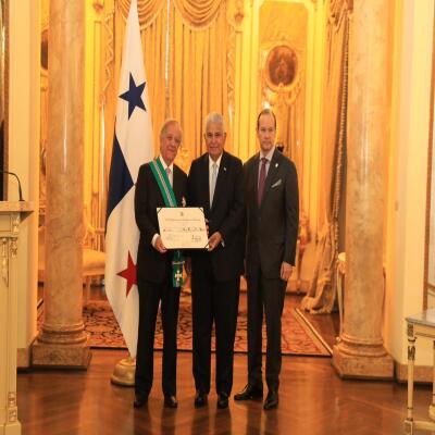 El presidente de la República, José Raúl Mulino, entregó hoy la Condecoración Nacional de la Orden General José De Fábrega, en el grado de Gran Cruz, al secretario general de la Asociación Latinoamericana de Integración (ALADI) y excanciller de Uruguay, Sergio Enrique Abreu Bonilla. Esta distinción fue conferida a través del Decreto Ejecutivo No. 5 de 27 de enero de 2026.