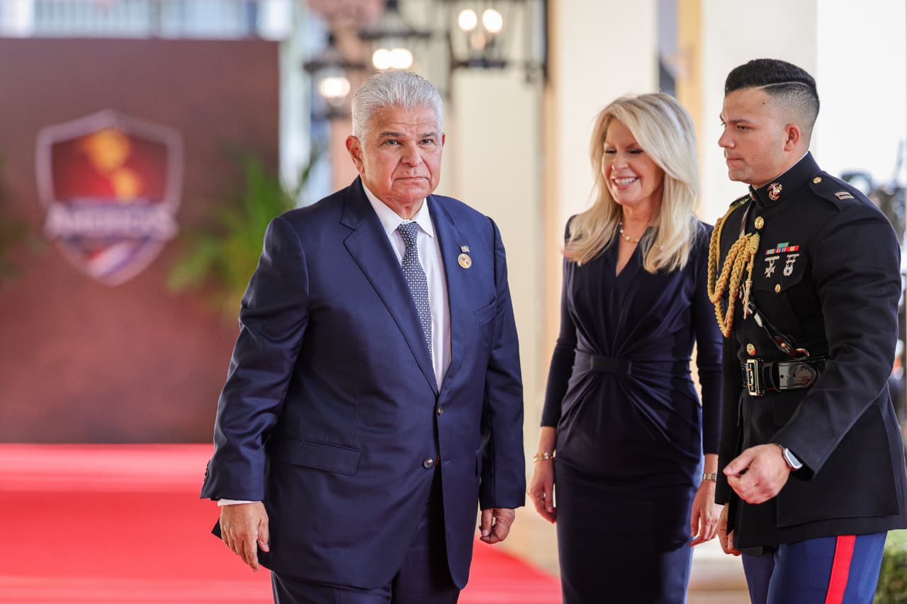 El Presidente de la República, José Raúl Mulino, llegó hoy a la sede de la cumbre de presidentes Escudo de las Américas en el hotel Trump National Doral en la ciudad de Miami.