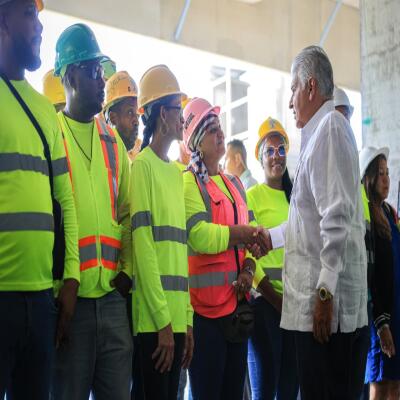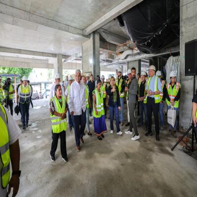 En vísperas de la celebración del Día del Trabajador, el presidente extendió una felicitación a todos los obreros —hombres y mujeres— que laboran “a toda máquina” para que este proyecto se entregue y entre en operación el próximo año. Igualmente, reconoció la labor de los subcontratistas y directivos de la empresa encargada, Acciona Construcción, S.A. “Vine a dialogar con los trabajadores comprometidos, porque en este lugar se atenderán sus hijos y nietos. Un hospital de primer nivel hecho con sus propias manos”, afirmó.